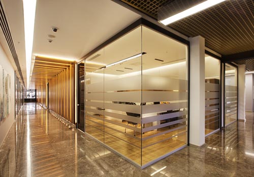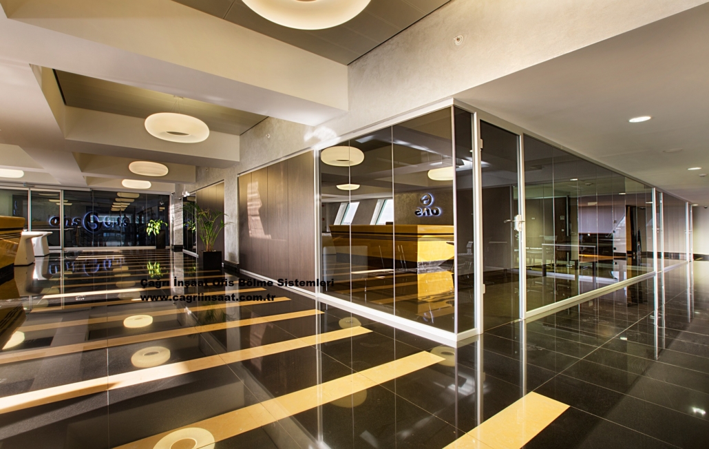 Burada kullanılan sistemler, çerçevesiz tek camlı minimalist modeller ve jaluzili cam ofis bölme sistemleri olmak üzere iki farklı konseptte uygulandı.